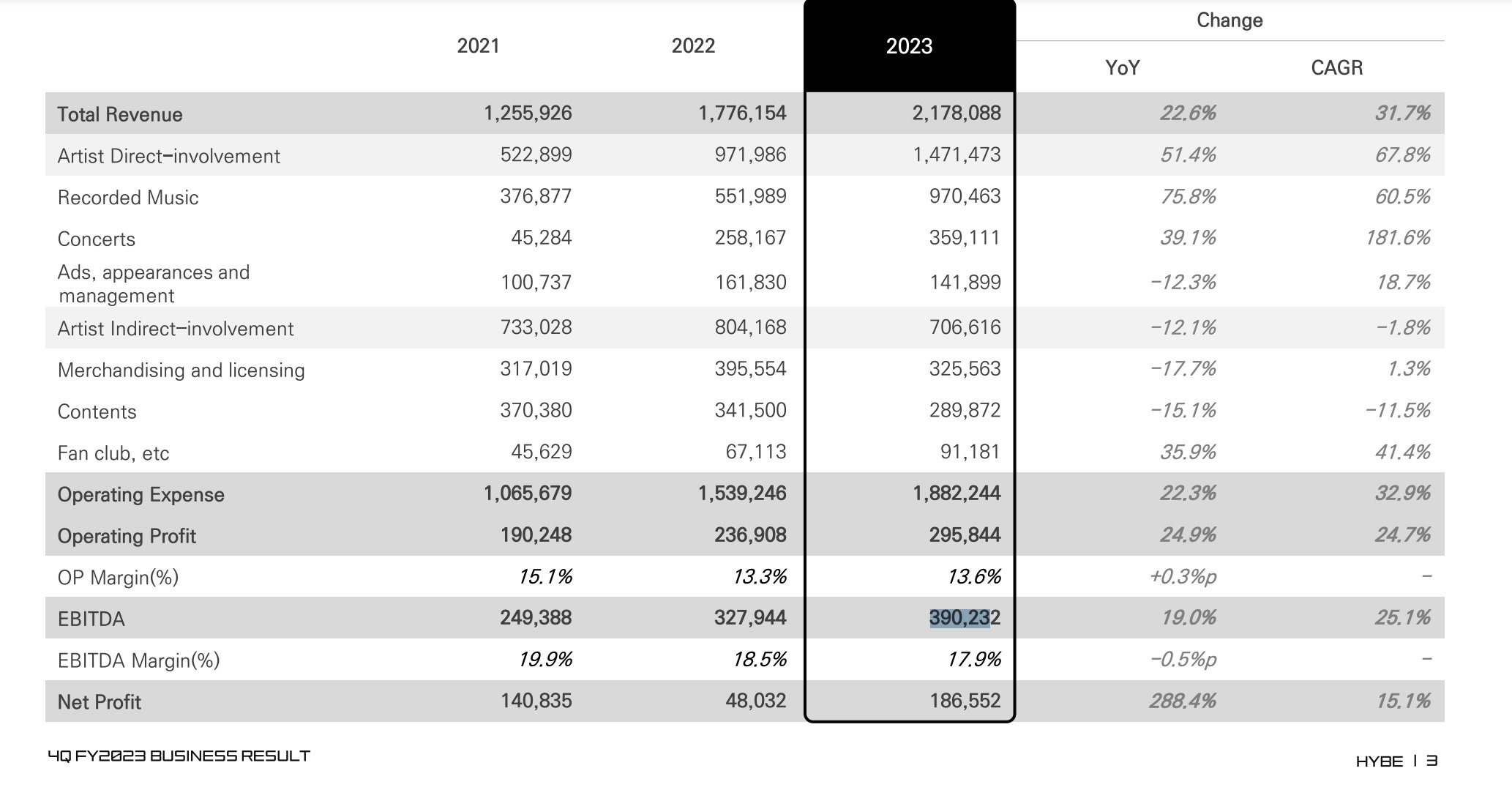 According to HYBE’s recently published financial results for FY 2023, the company’s revenues generated by its ‘Fan Club etc.’ reached 91.18 billion South Korea Won last year.