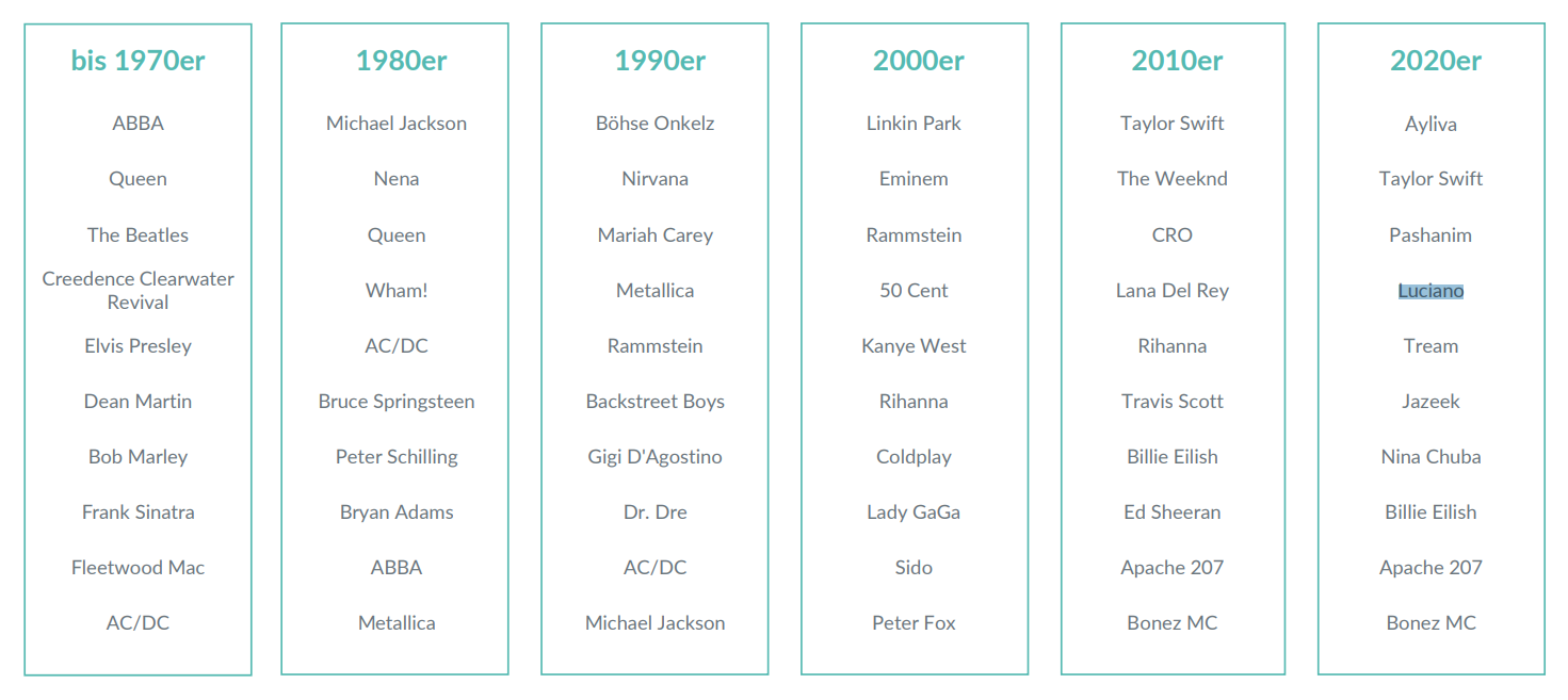 That trend is relatively new, driven by the shift to streaming. GfK’s analysis from last month showed that, while music streams from the 1990s and earlier are dominated in Germany by international acts like Elvis Presley, Queen, and Michael Jackson, streams of music from the 2020s are dominated by German artists like Ayliva, Pashanim, and Luciano.