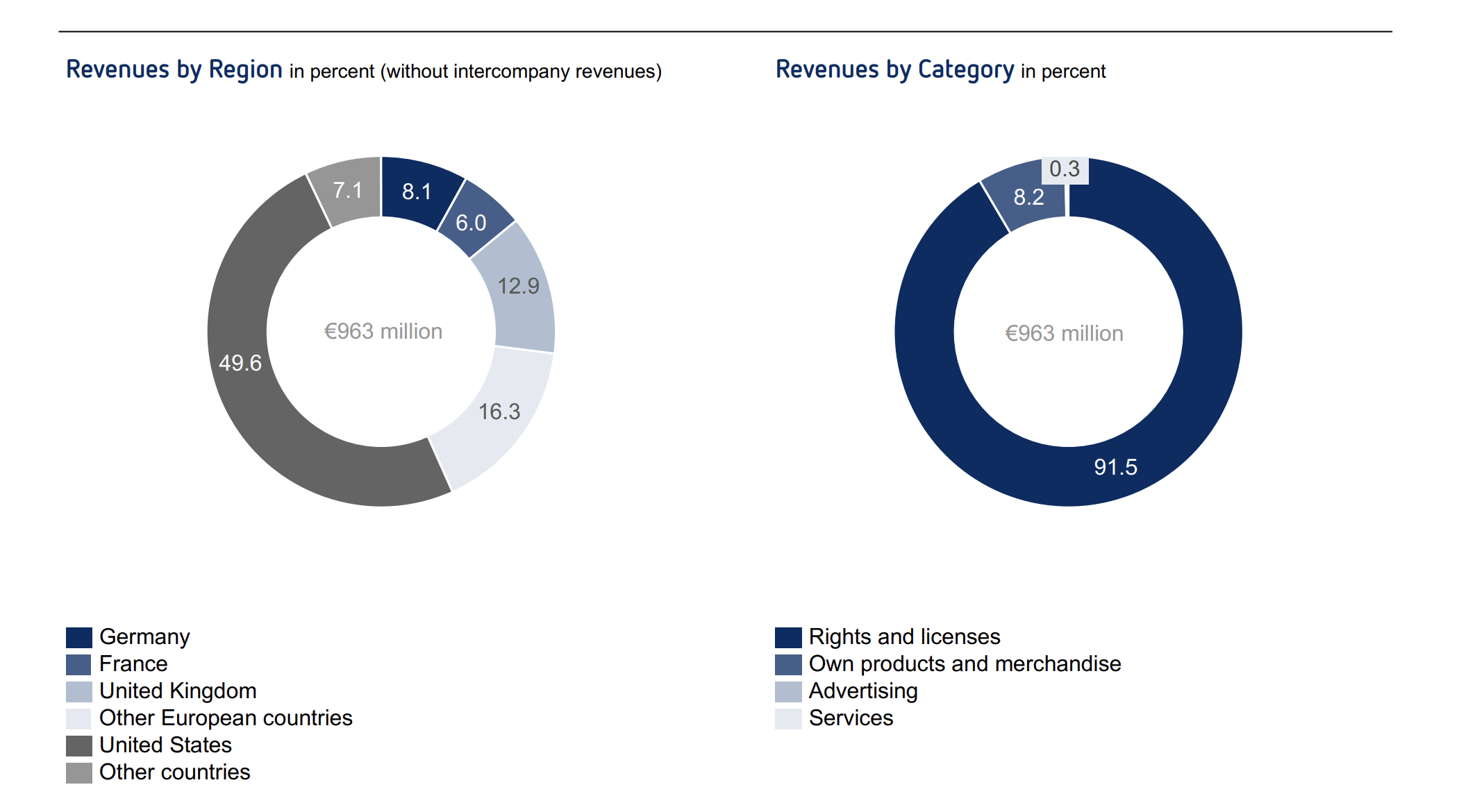 BMG’s geographic revenue breakdown shows that the United States remains the company’s largest market, accounting for 49.6% of all revenues in 2024, down slightly from 51.5% in 2023.