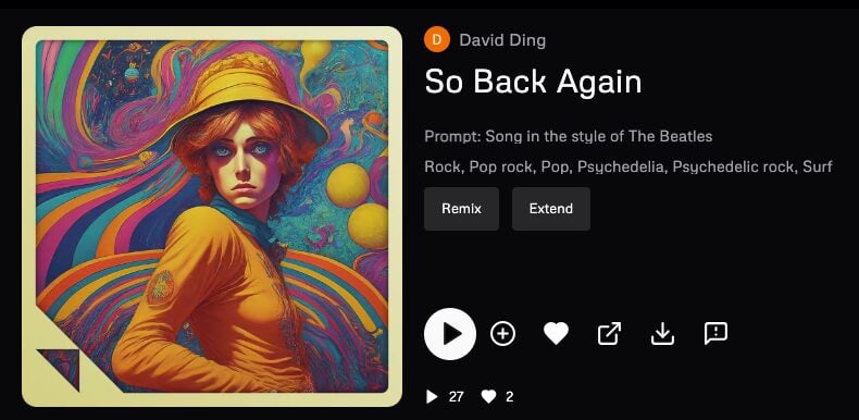 Given this, it’s surprising that Udio’s CEO has generated a song on his profile with the prompt “Song in the style of The Beatles”, and another that includes in the prompt the phrase “disney song”. The former is quite successful: