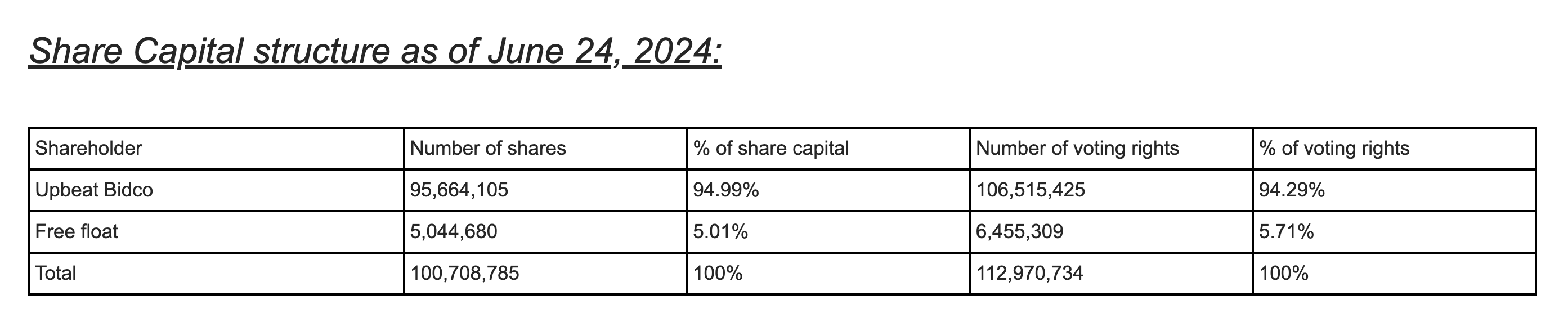 An interesting quirk of the new ownership structure (as you can see above): It leaves 5.01% of shares as ‘free float’ on the Euronext public market.