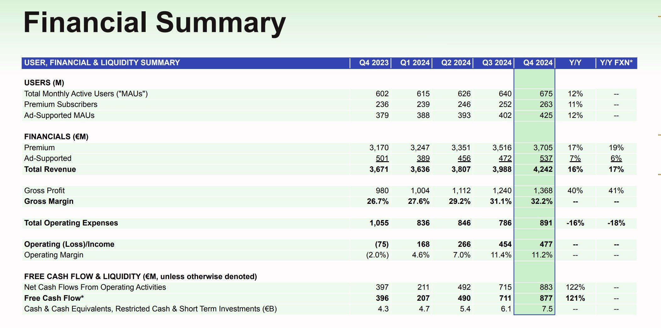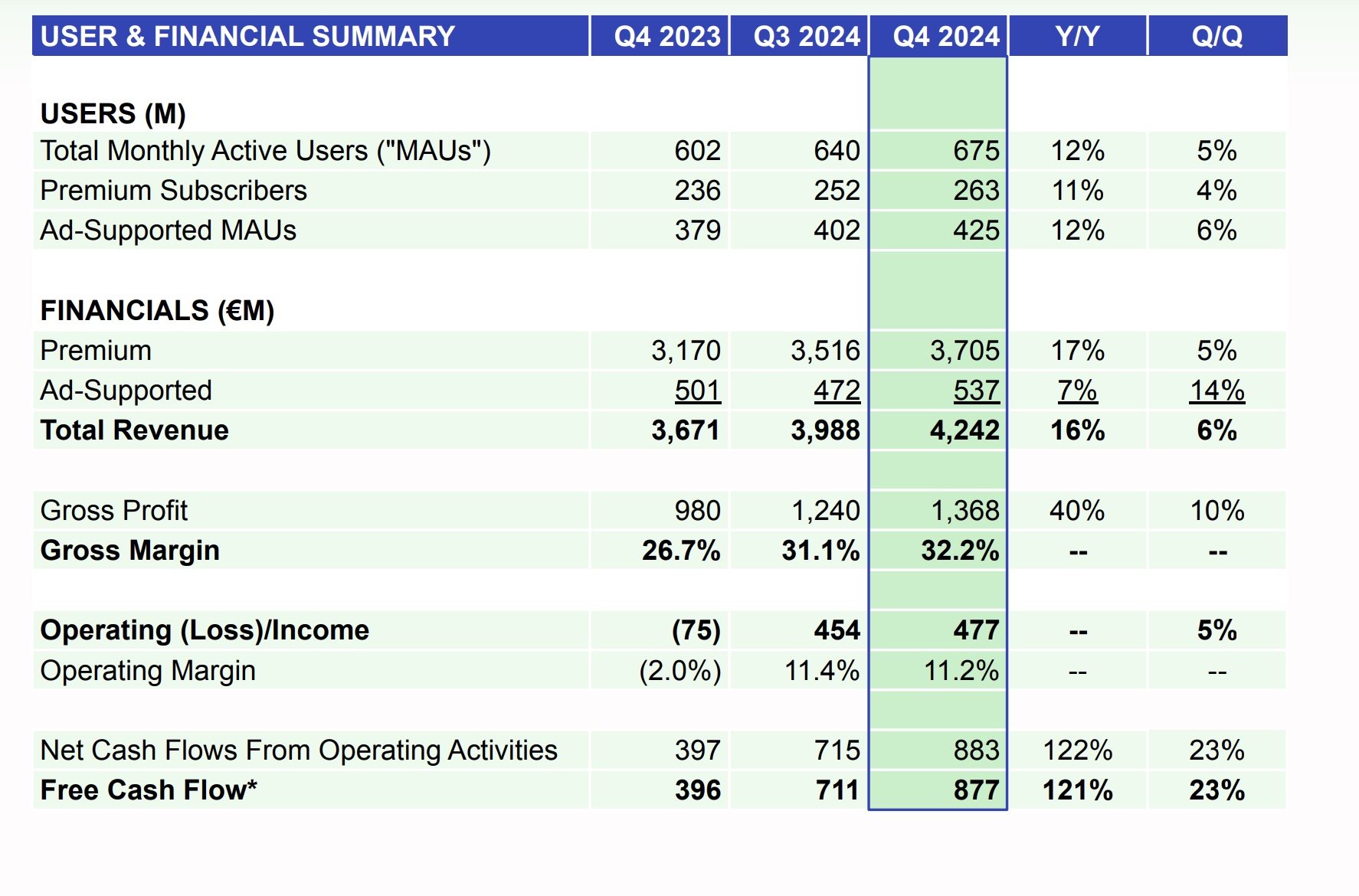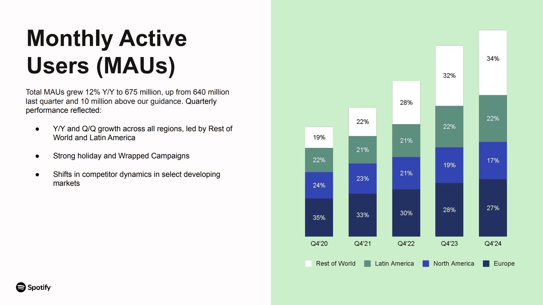 In terms of guidance for Q1 2025, Spotify forecasts reaching 678 million MAUs, an addition of around 3 million net new MAUs in the quarter.
