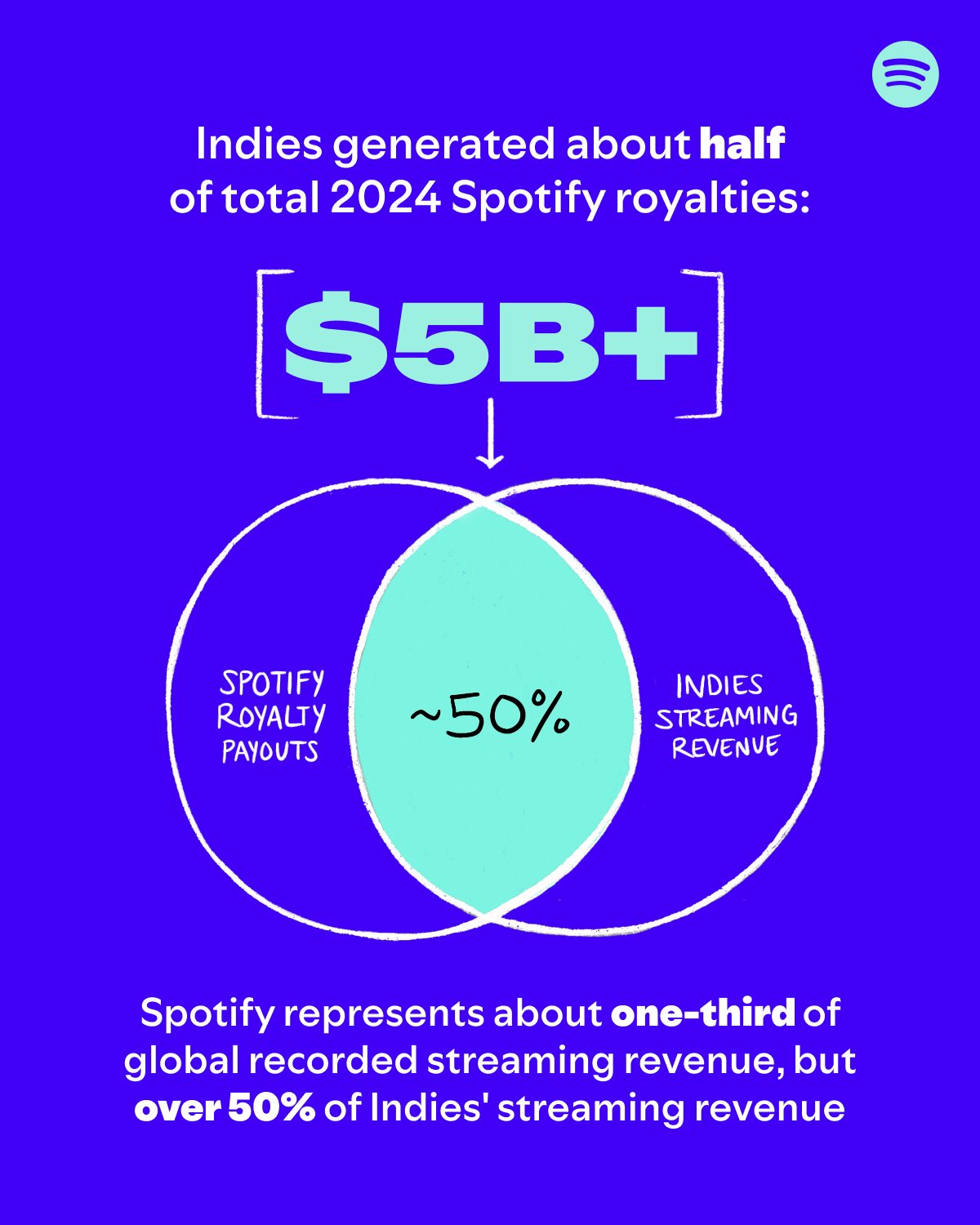About 40% of the royalties generated by Italian artists in 2024 came from music by indie artists or labels, the platform said, which is somewhat lower than the average across Spotify as a whole. Earlier this year, Spotify said about half of royalties were accounted for by indies.