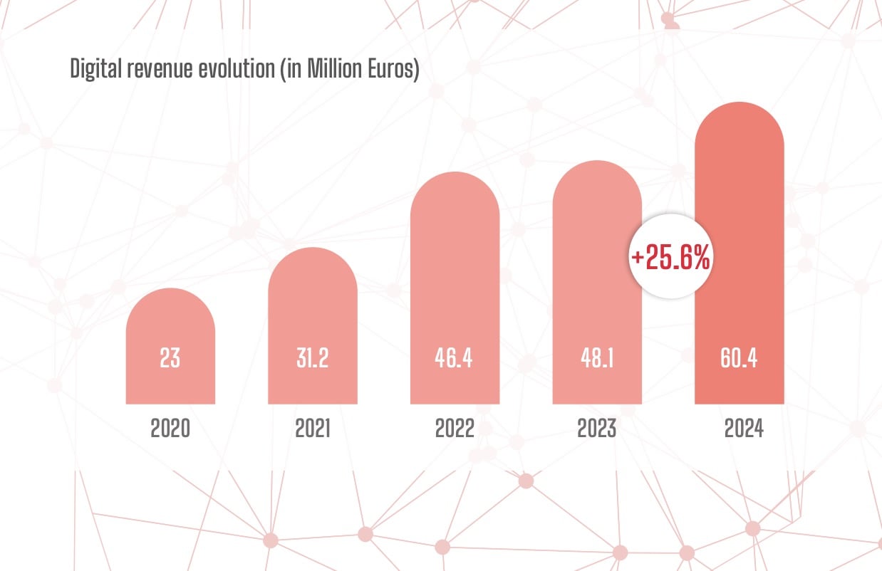 SGAE’s revenue growth was primarily driven by digital, which was up 25% YoY, reaching €60.4 million ($65.36m) in 2024 (see below).