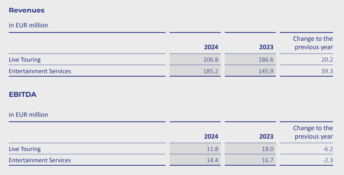 However, DEAG posted an operating loss of -€2.4 million (-$2.6 million) in 2024, compared to an operating profit of €13.3 million the year before. EBITDA saw a 45% YoY drop to €14.4 million ($15.6 million), which the company said was due to a “conscious and strategic” decision to divert capital towards projects that will ensure long-term growth.