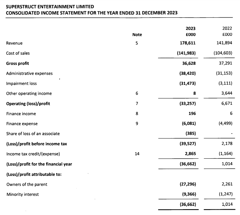 London-headquartered Superstruct Entertainment Ltd. filed an earnings report for fiscal 2023 (ended December 31, 2023) with the UK’s Companies House on Monday (March 3), showing revenue of GBP £178.6 million (USD $222.2 million at the average exchange rate for 2023). That’s up from £141.9 million in 2022.