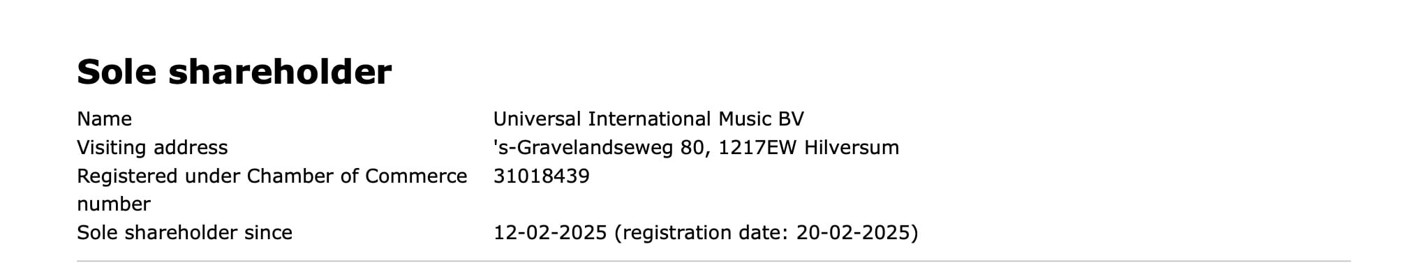 According to the regulatory filing unearthed by MBW, Universal has been the company’s sole shareholder since February 12, 2025.