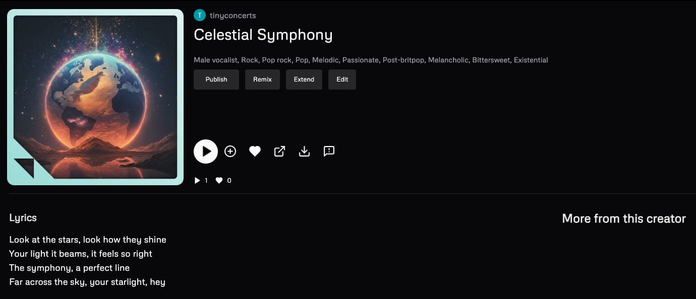 In the examples above, I entered lyrics myself. However, the default user experience on Udio is for lyrics to be generated automatically.