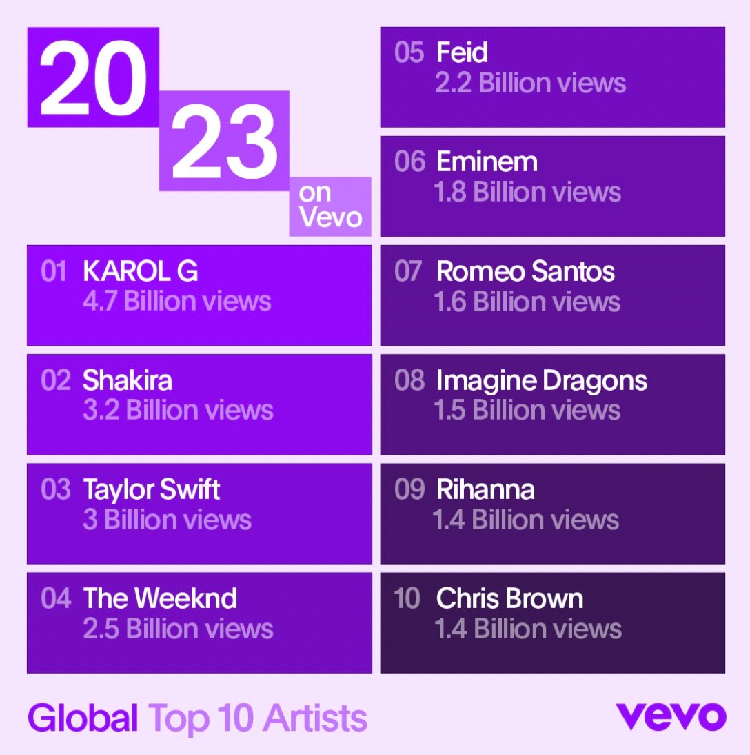 “Vevo’s annual charts help us track fandoms, viewership patterns, and what’s happening in the cultural zeitgeist. We love this time of year at Vevo, being able to look back and really celebrate some of the biggest music video moments of the years.”