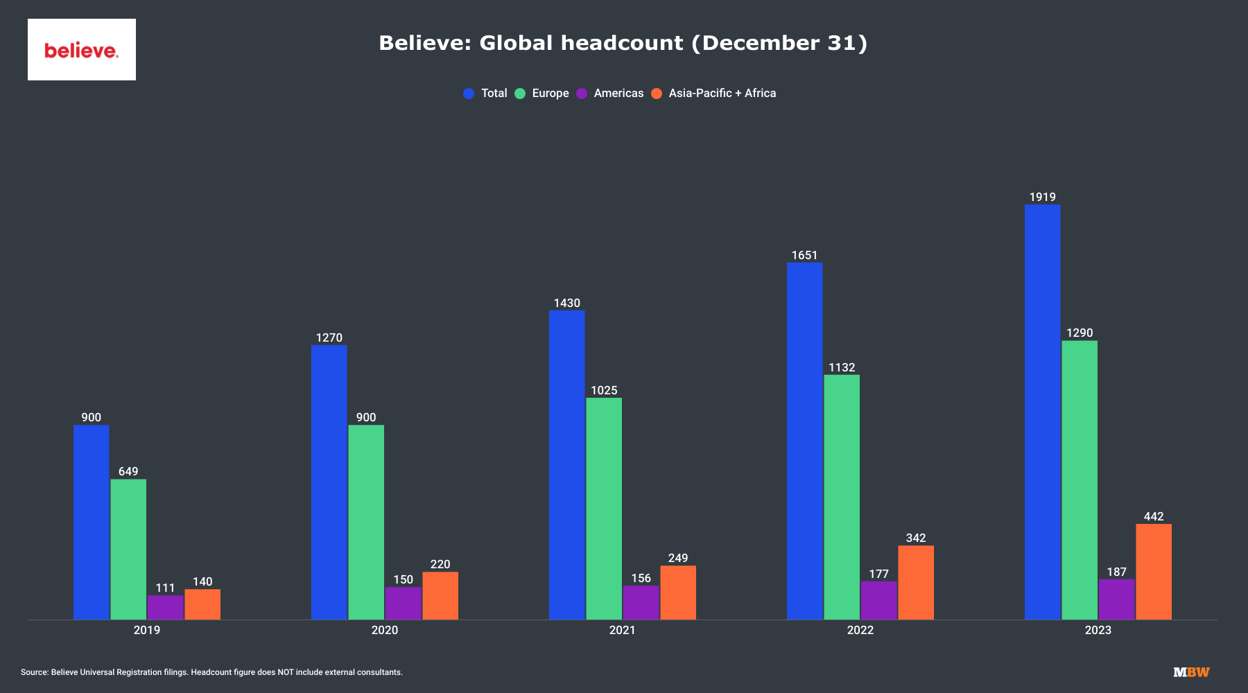Via its annual registration document with the French financial authorities, Believe reveals its global employed headcount.