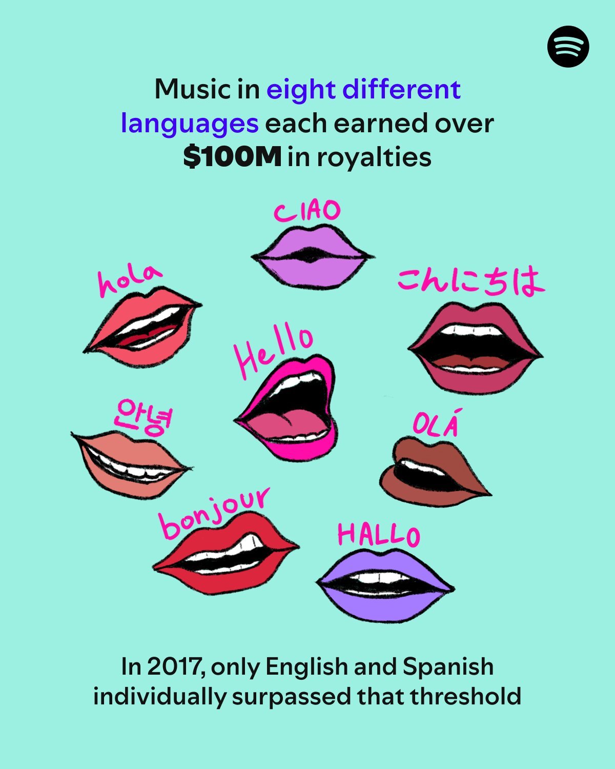 (To be clear, this list isn’t a perfect reflection of which language’s music is most popular worldwide; it’s impacted by Spotify’s footprint. If Spotify were available in China, Mandarin would undoubtedly be on the list.)