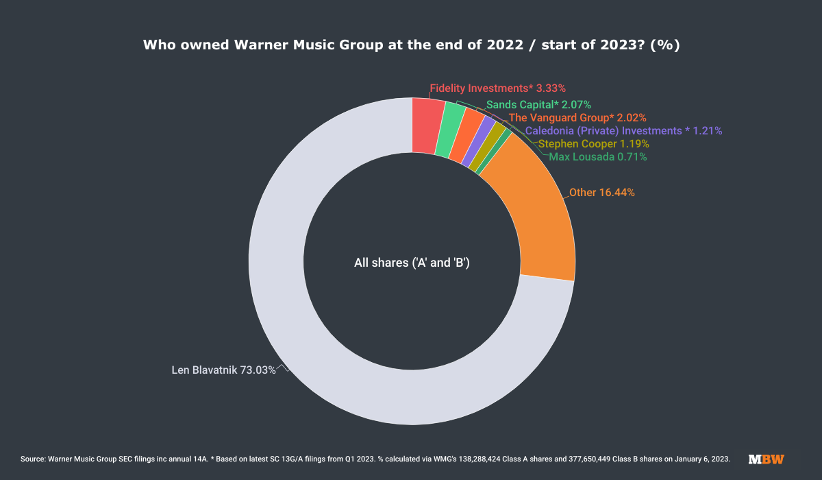 Thanks to a flurry of these filings in January and February this year, MBW can present an updated picture of what Warner Music Group’s shareholding looked like as of Q1 2023.