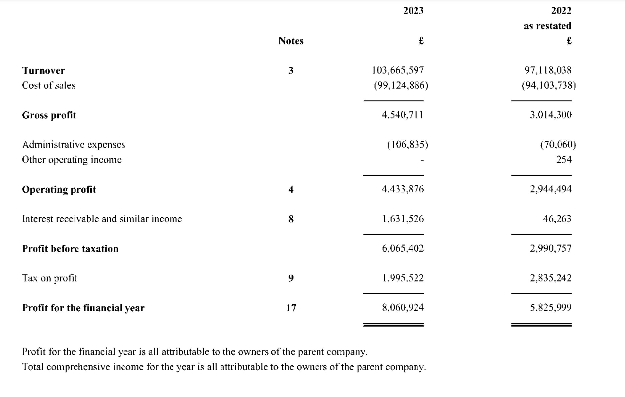 Administrative expenses during the year ballooned to £106,835 from £70,060 in 2022.